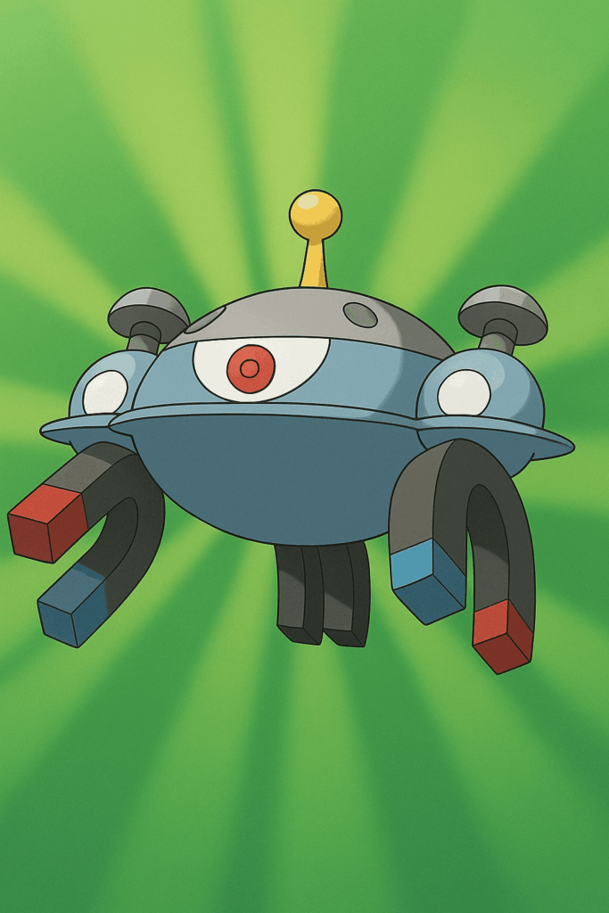 前述のとおり、ジバコイルはメカ系の代表格。宙に浮かぶ構造やパーツの配置は、実験装置や発電機のようで、まさに道具が進化した姿を体現しています。