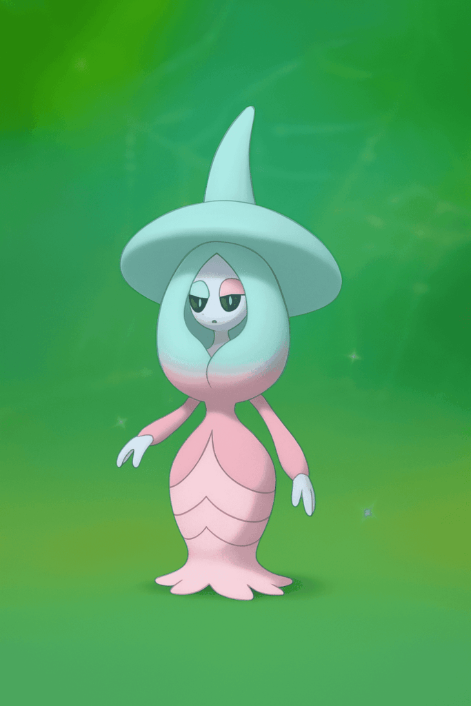 完全に「雪女」モチーフのポケモン。氷のような美しさと、そこに潜む冷たい執念が合わさって、日本的な恐怖美を表現しています。